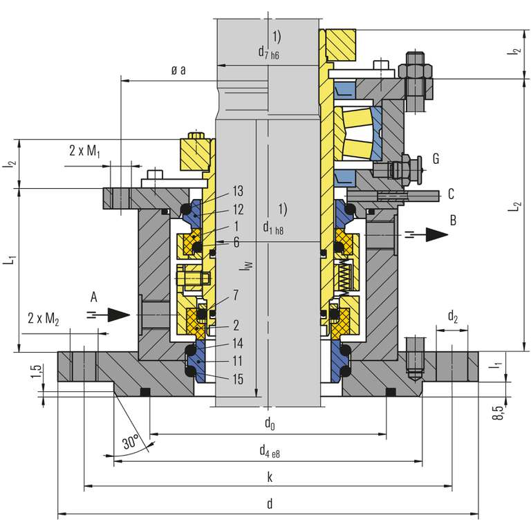 The M481K and its variants will remain closed even during pressure variations or pressure reversal. Operation is possible with buffer fluid (p1max = 6 bar (87 PSI)) or pressurized with barrier fluid as double seal