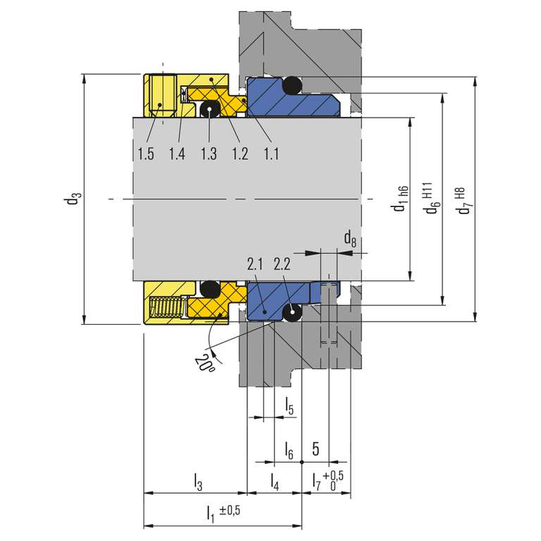 Assembly aid (seat plate and fixing screws) not supplied with the mechanical seal, but available.