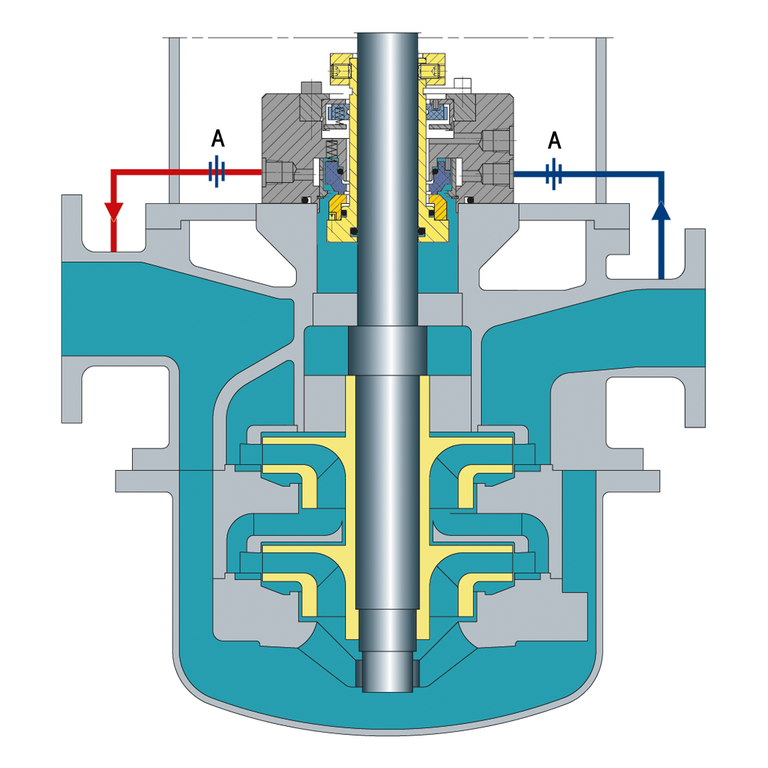 Recirculation from a circulation device in the seal chamber through a cooler and back into the seal chamber.